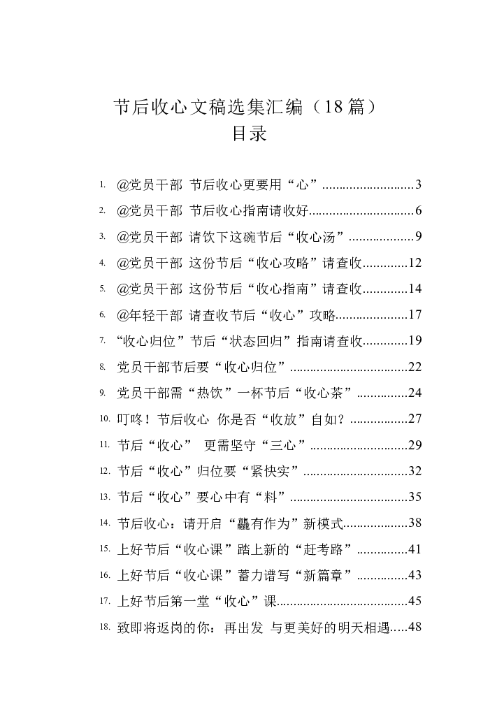 节后收心文稿选集汇编(18篇)