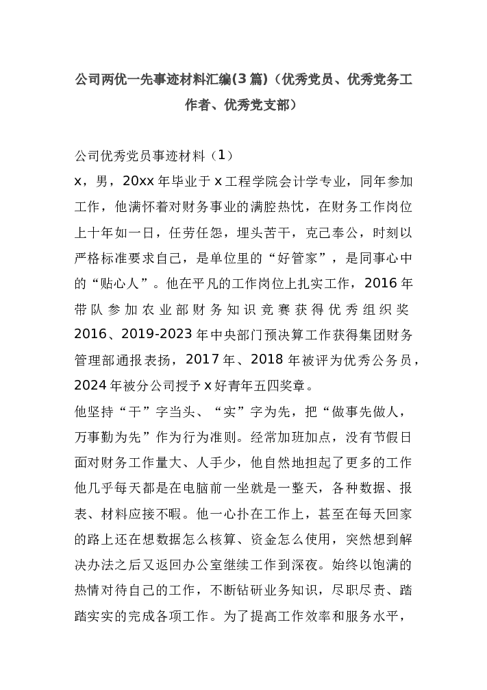 (3篇)公司两优一先事迹材料汇编(优秀党员、优秀党务工作者、优秀党支部)