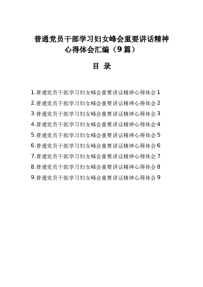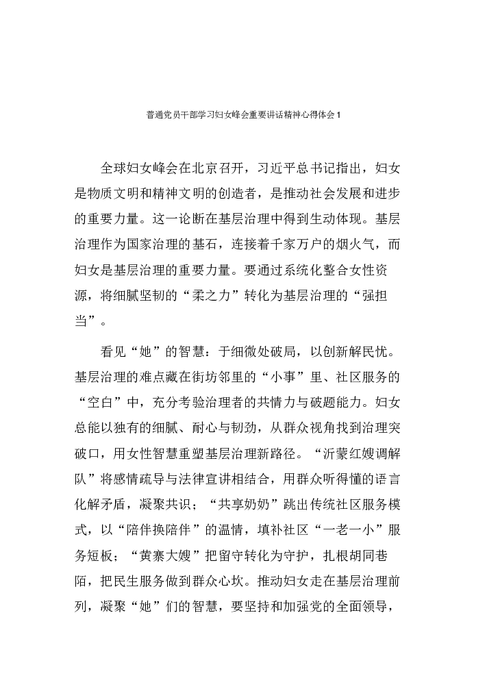 (9篇)普通党员干部学习妇女峰会重要讲话精神心得体会汇编