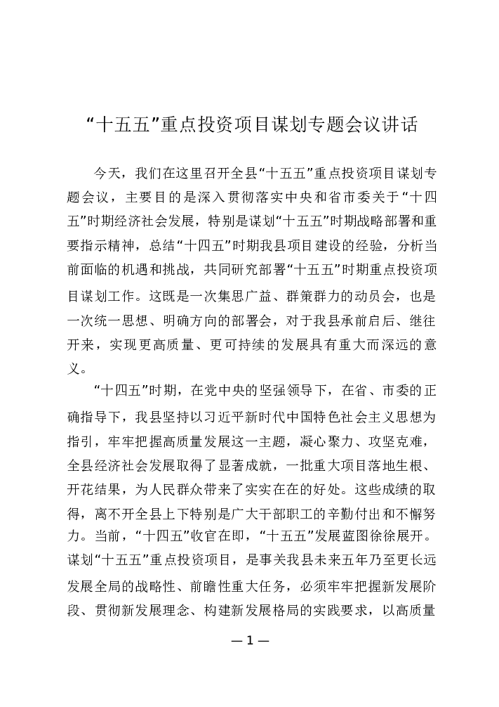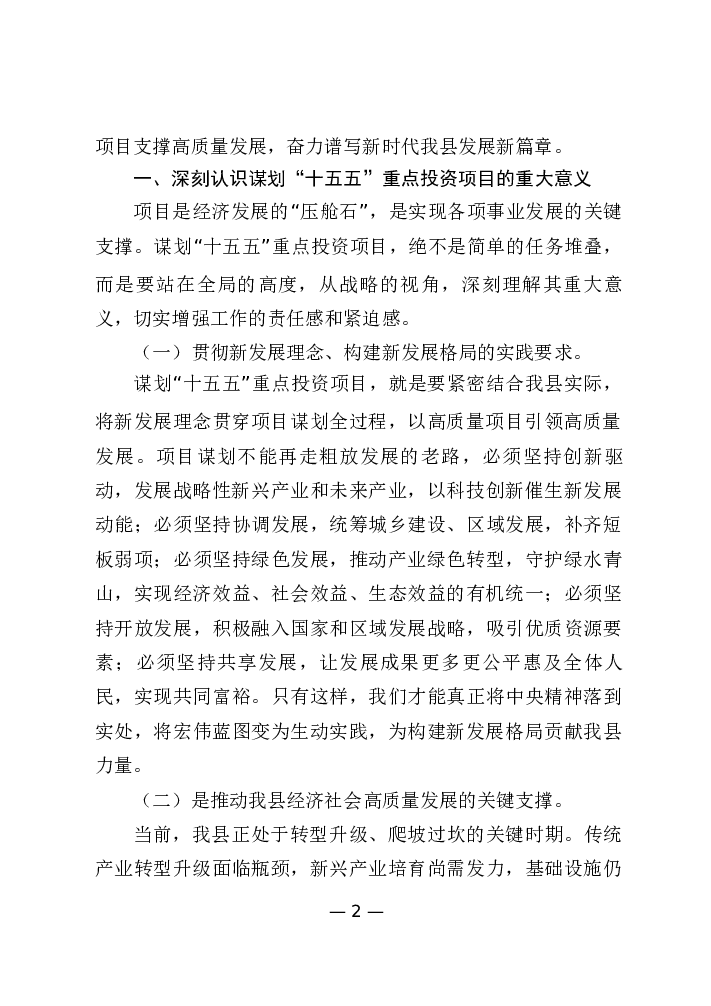 “十五五”重点投资项目谋划专题会议讲话