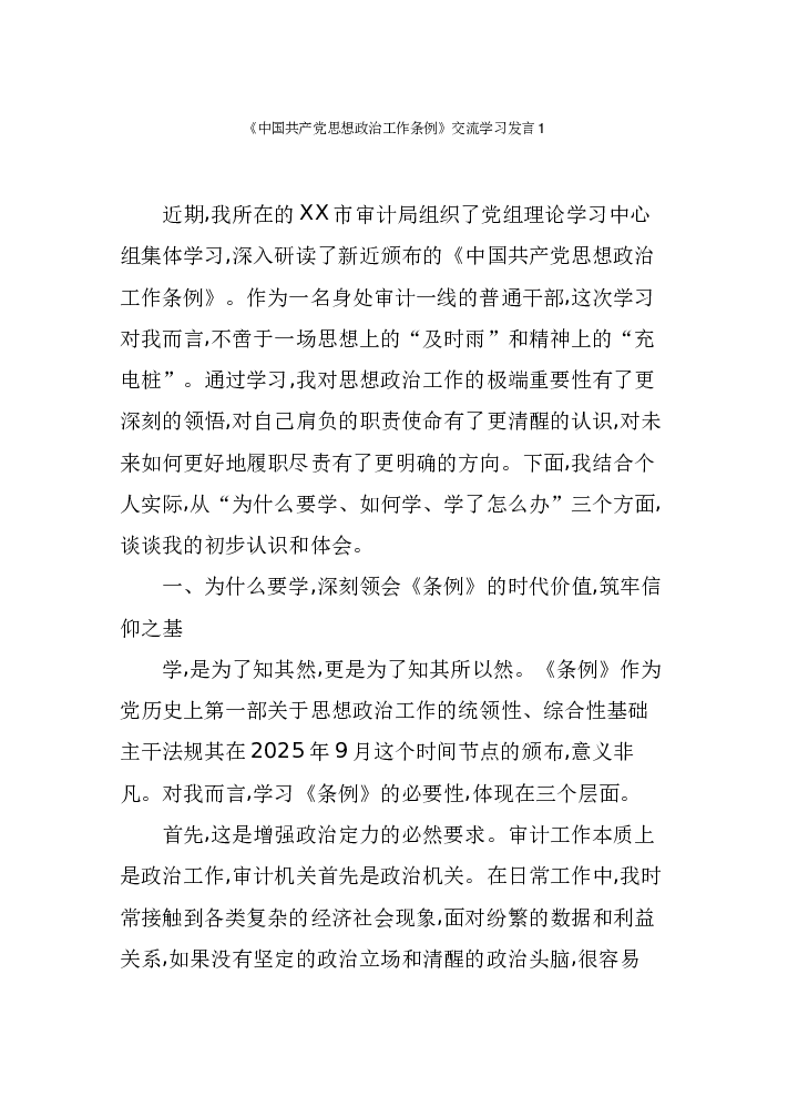 (10篇)《中国共产党思想政治工作条例》交流学习发言汇编