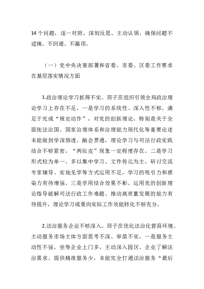 2024年度各级班子民主生活会对照检查材料汇编(10篇)