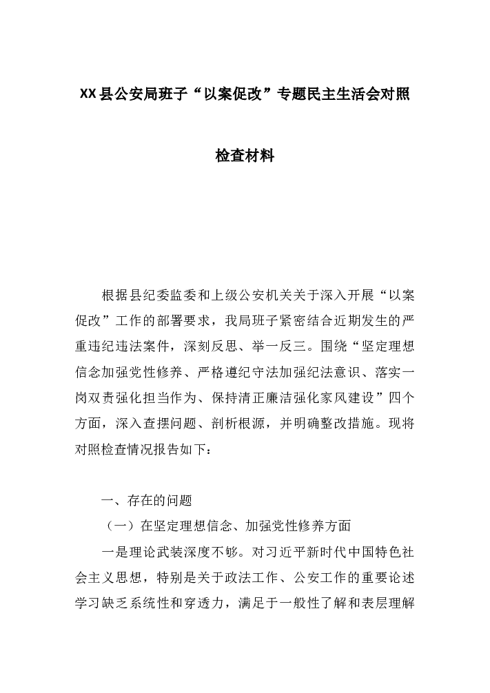 XX县公安局班子“以案促改”专题民主生活会对照检查材料