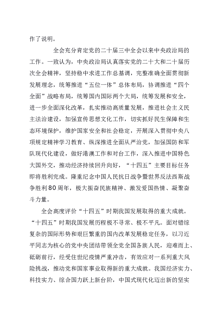 学习贯彻党的二十届三中全会精神发言提纲10例
