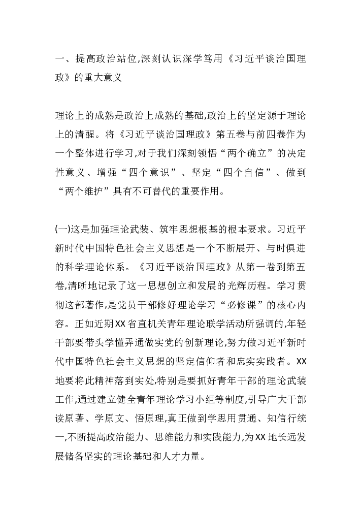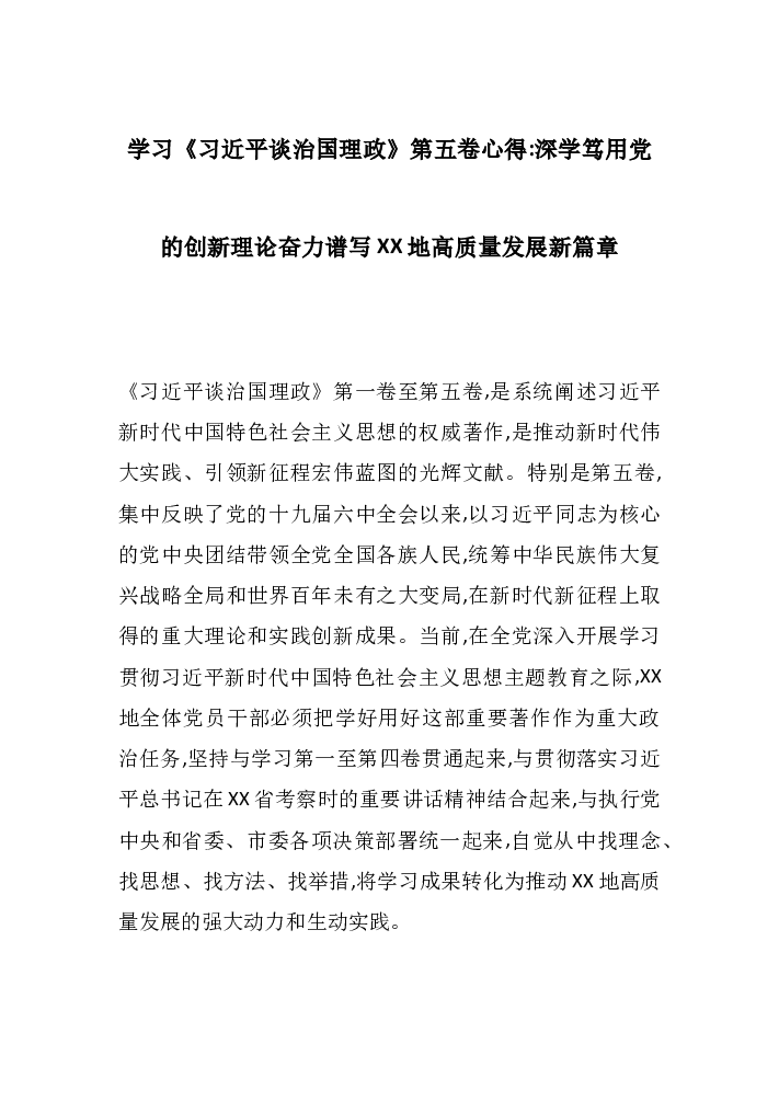 学习《总书记谈治国理政》第五卷心得:深学笃用党的创新理论奋力谱写XX地高质量发展新篇章