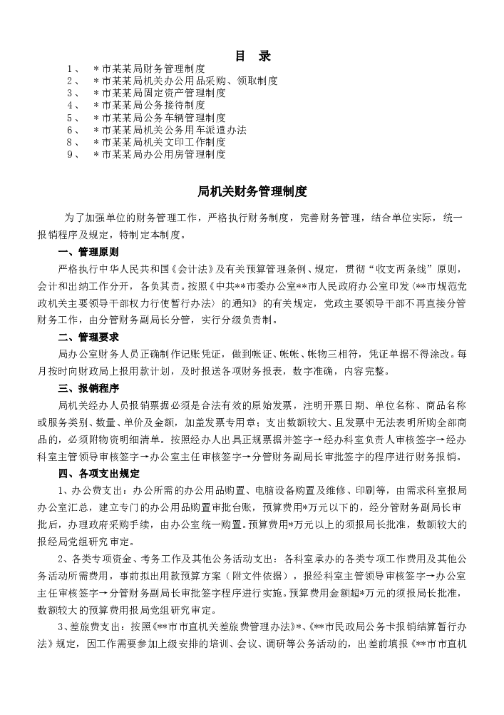 某局机关制度汇编(财务后勤篇,9个)