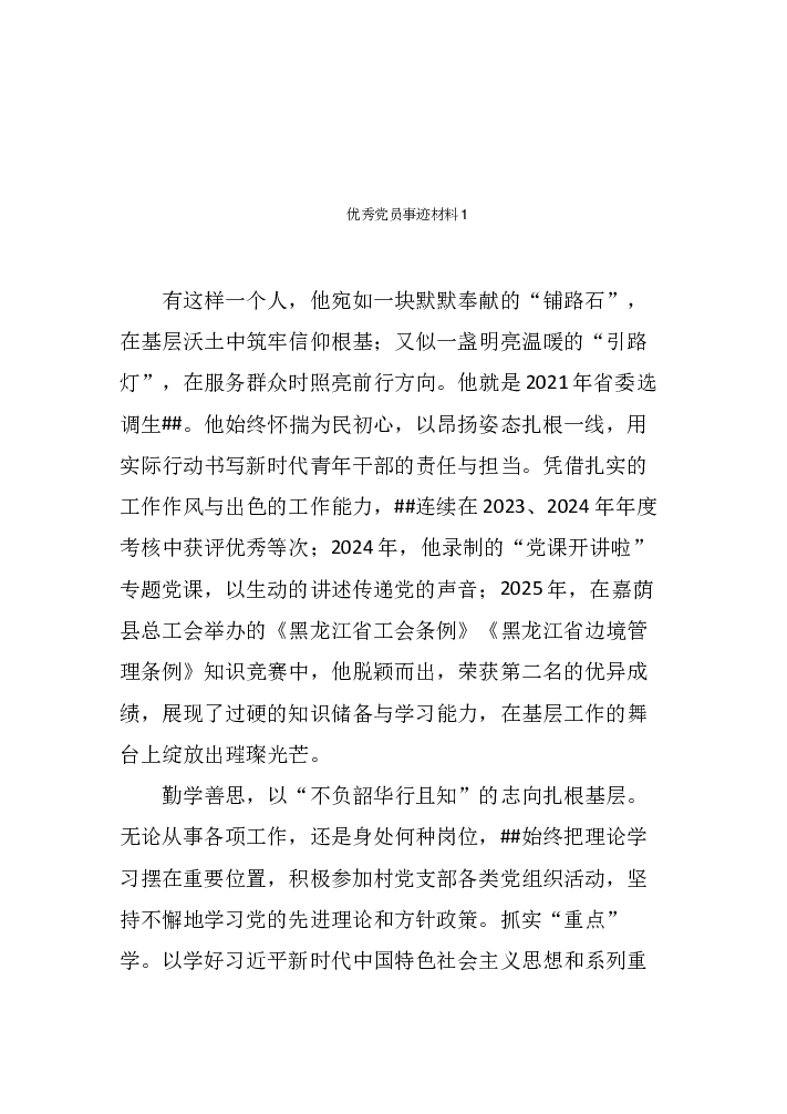 (10篇)优秀党员事迹材料汇编