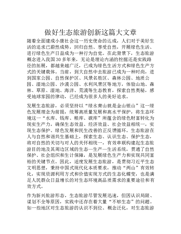做好生态旅游创新这篇大文章