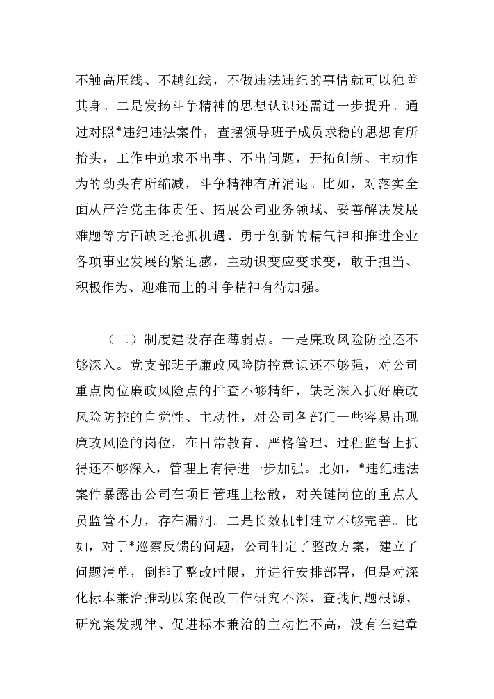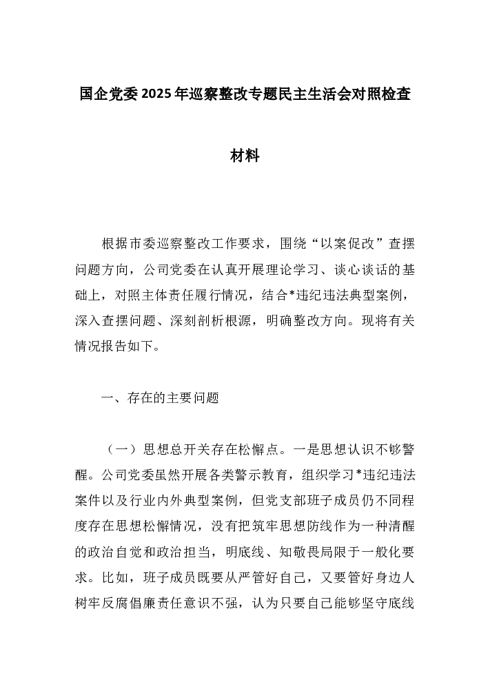 国企党委2025年巡察整改专题民主生活会对照检查材料