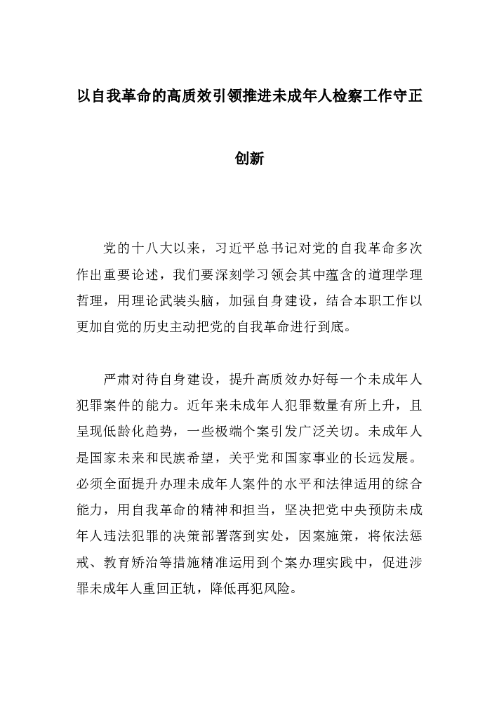 以自我革命的高质效引领推进未成年人检察工作守正创新