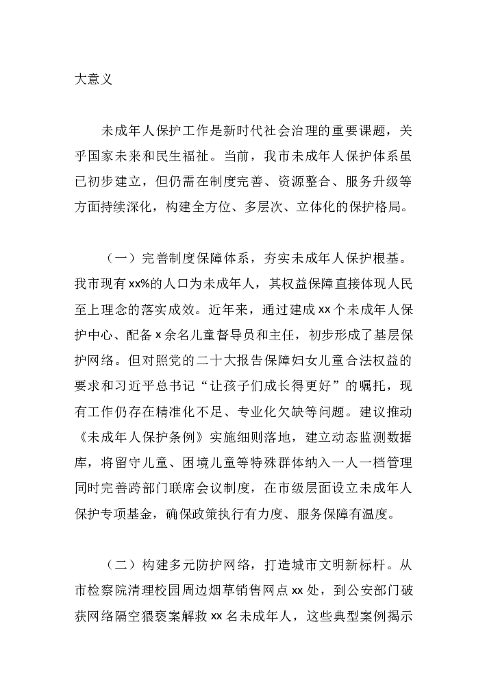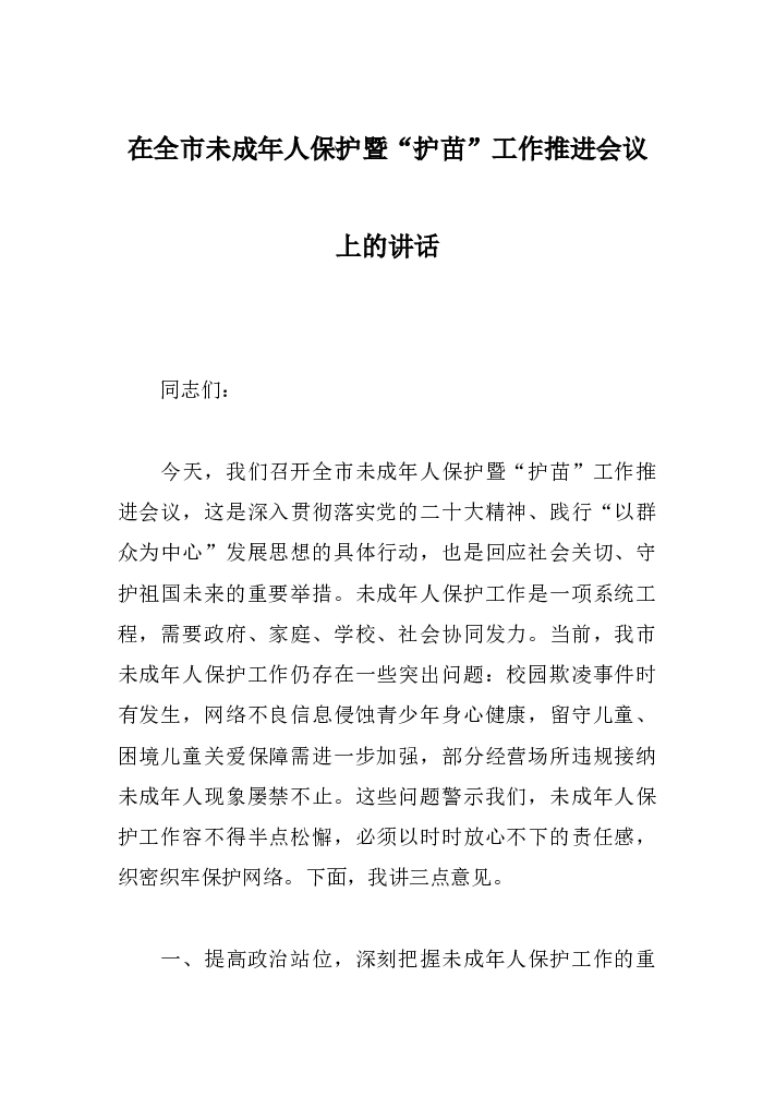 在全市未成年人保护暨“护苗”工作推进会议上的讲话