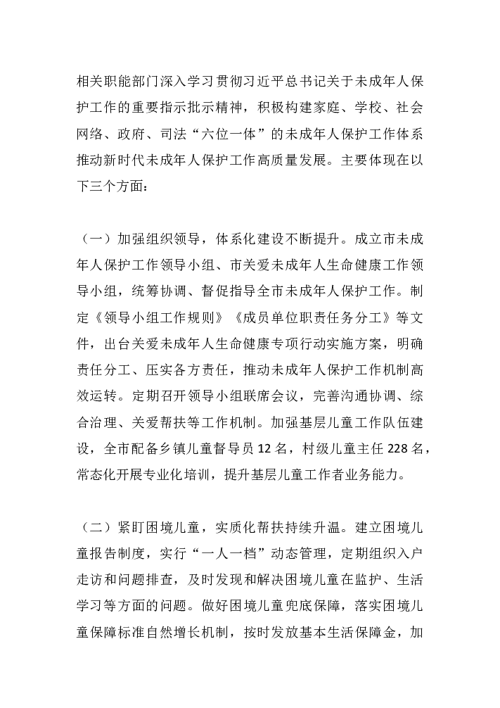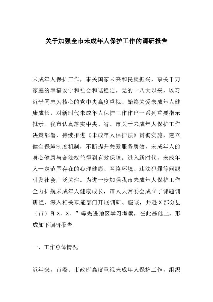 关于加强全市未成年人保护工作的调研报告
