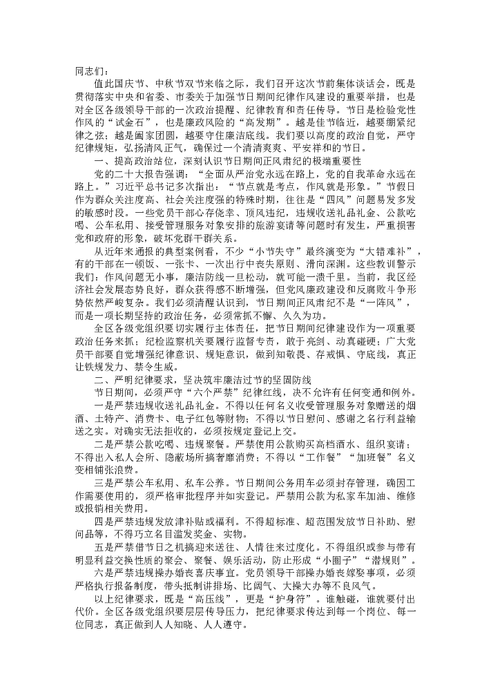 在2025年国庆中秋节节前谈话会上的讲话提纲
