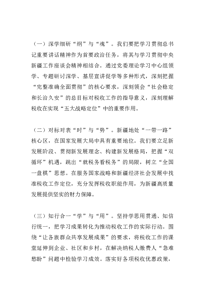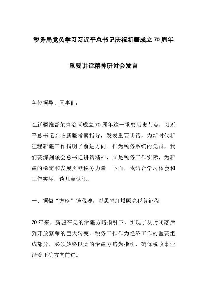 税务局党员学习总书记总书记庆祝新疆成立70周年重要讲话精神研讨会发言